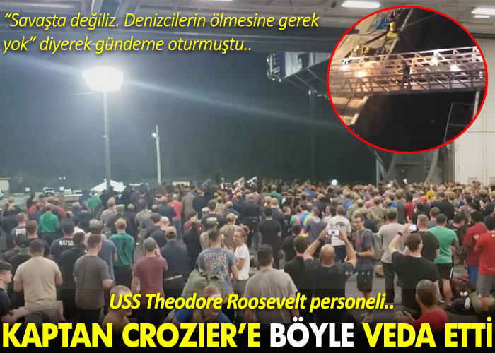 ABD’ye ait USS Theodore Roosevelt uçak gemisindeki koronavirüs salgını nedeniyle yaptığı yardım çağrısı nedeniyle görevden alınan kaptan Brett Crozier, gemiden büyük bir destlekle uğurlandı.